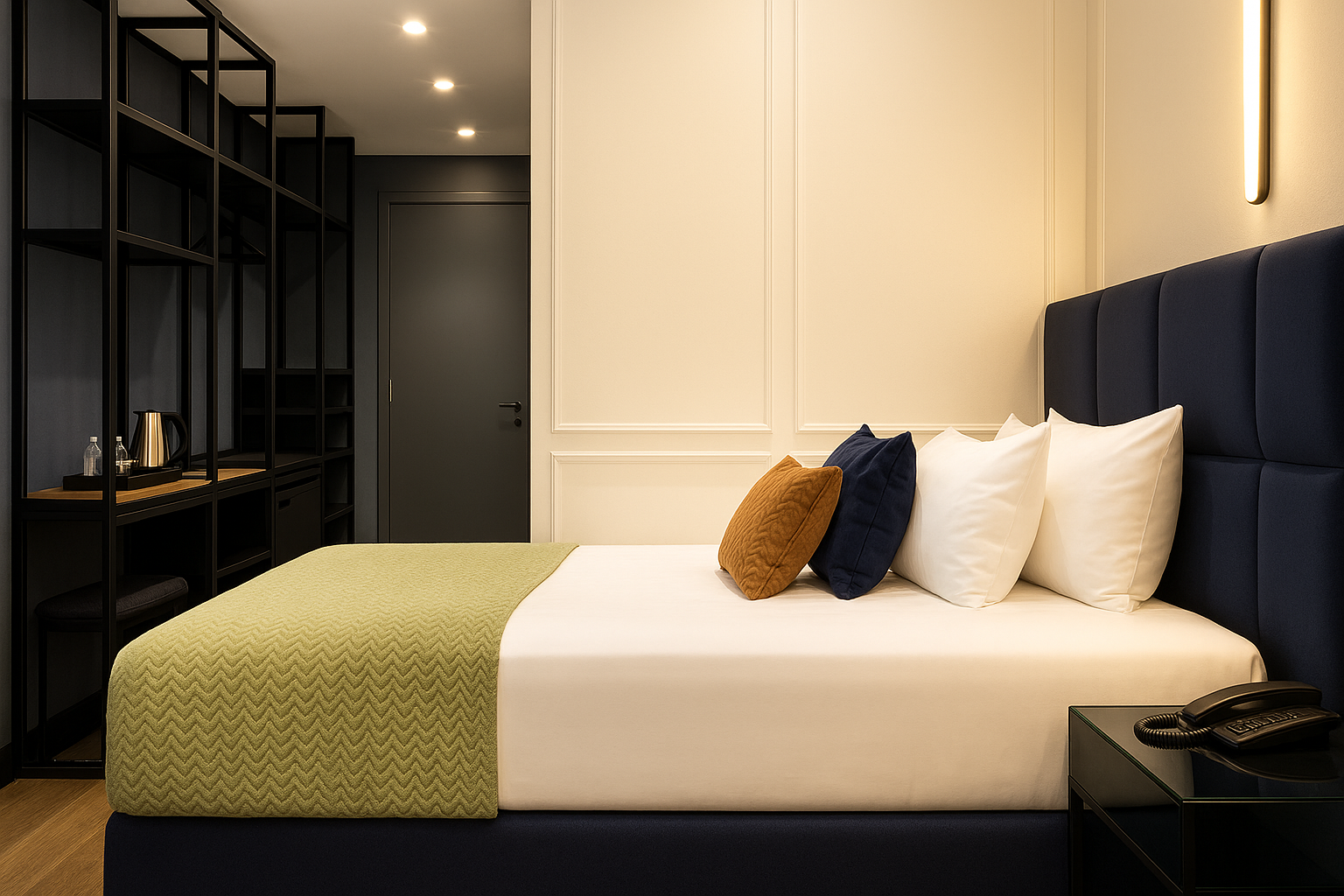 Voor hotels met een uitgesproken stijl of specifieke merkidentiteit ontwikkelen we custom made hotelkamers, afgestemd op locatie, doelgroep en serviceniveau. Onze ervaring binnen de hotelsector helpt ons om praktische keuzes te maken die aansluiten op zowel de gastbeleving als het dagelijkse gebruik. Het resultaat: hotelkamers met een doordachte indeling, duurzame materialen en een uitstraling die past bij het concept van het hotel.