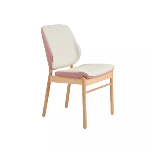 De Abbie S -stoel combineert elegantie en comfort met een gebeitst beukenhouten frame en een volledig gestoffeerde zitting en rugleuning met twee stoffen met biezen (meerprijs inbegrepen) voor een stijlvolle, aanpasbare touch. Perfect voor restaurants, bistro's, fastfoodrestaurants en wachtruimtes , met een lange levensduur en een verfijnd design.