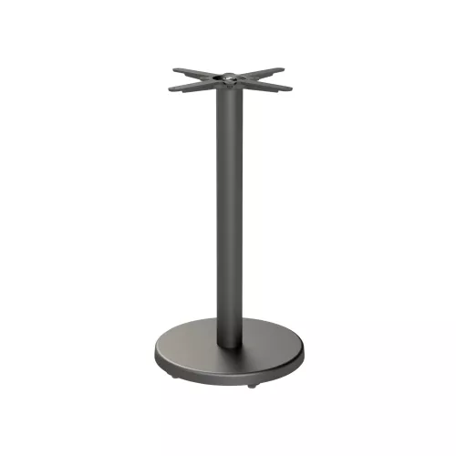 Het strakke ontwerp maakt het mogelijk om de voet te combineren met verschillende tafelbladen tot een maximale afmeting van 80 cm. De voet is uitgevoerd in zwart en past daardoor eenvoudig in verschillende interieurstijlen. Hetzelfde ontwerp is ook verkrijgbaar als standaard tafelvoet.Ook verkrijgbaar in een standaardhoogte, geschikt voor restaurant- of cafetafels.