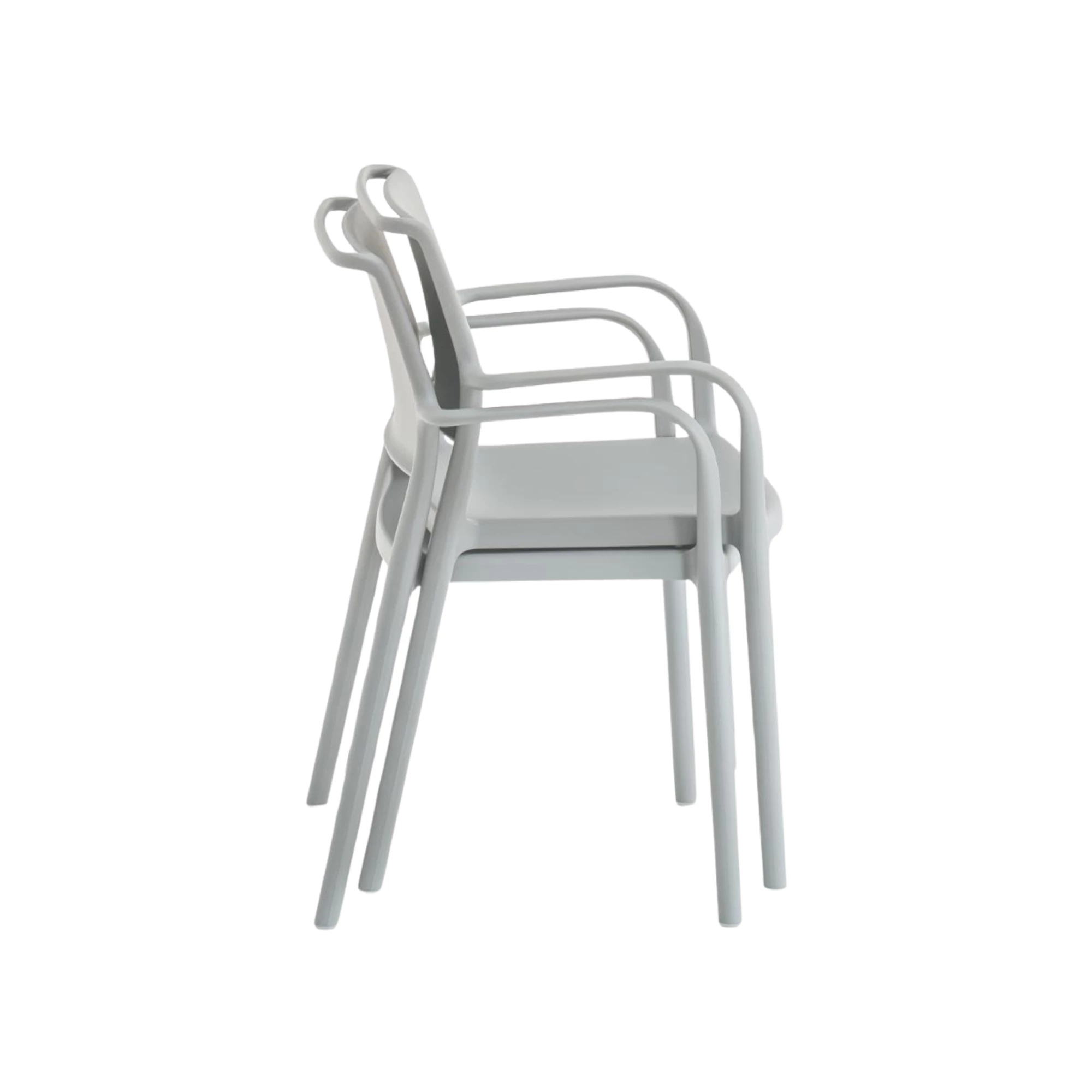 De Ara 315 is een stapelbare polypropyleenstoel met armleuningen, geschikt voor terrassen en horecaruimtes buiten. De bovenkant van de rugleuning vormt een groot handvat voor makkelijk tillen. De taps toelopende poten zorgen voor elegantie en stevigheid. Verkrijgbaar in diverse kleuren.