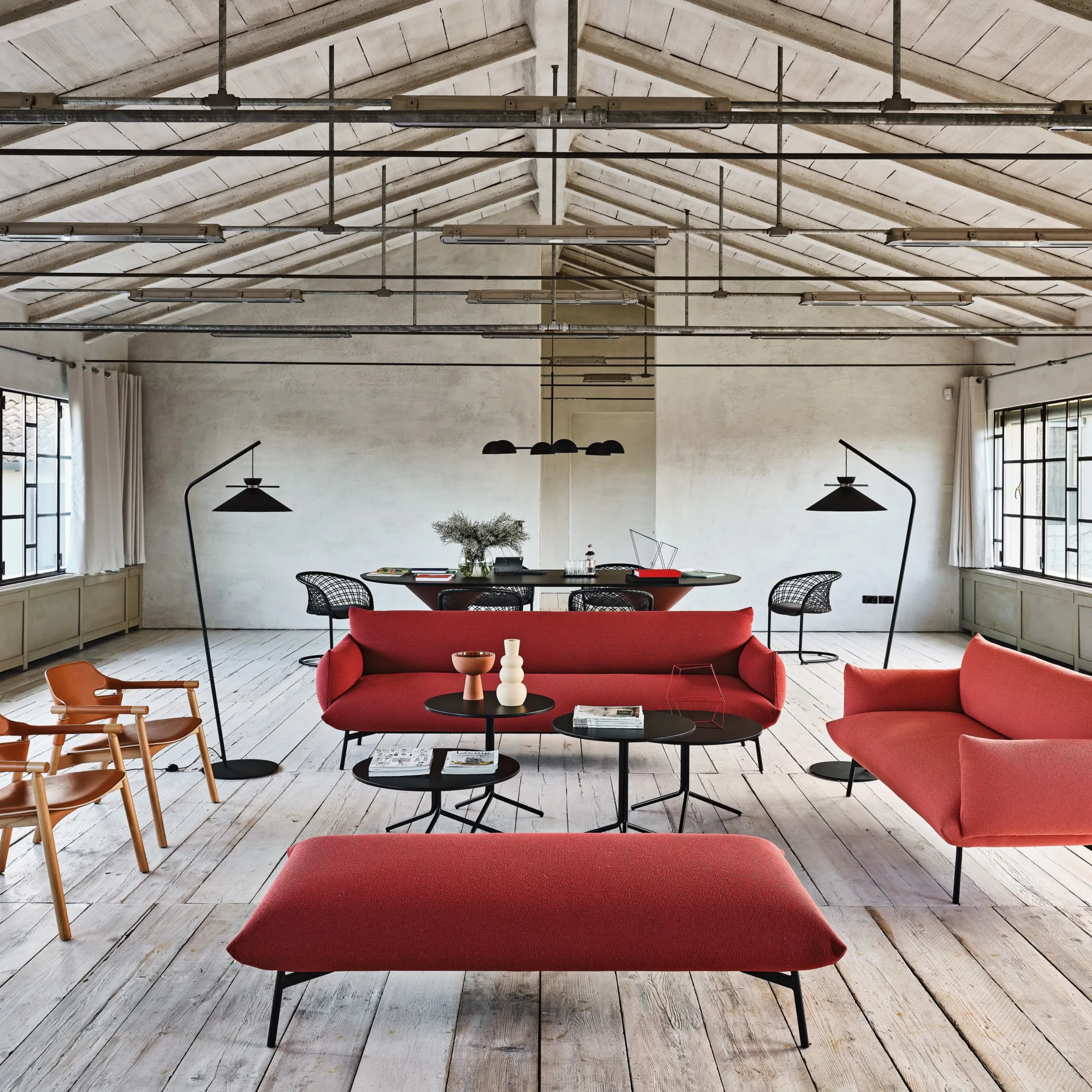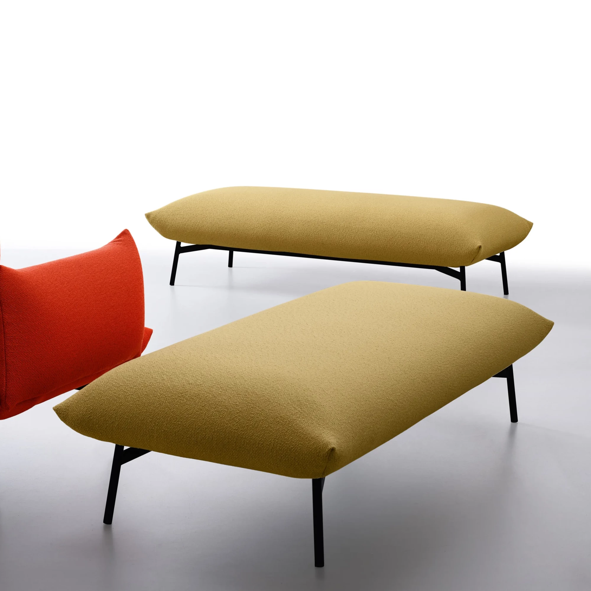 Area Pouf B2 M TS is een gestoffeerde tweezits pouf, ontworpen voor professioneel horecagebruik. De zachte zitting rust op een gelakt stalen frame in diverse kleuren. Past perfect in wachtruimtes, lobbies of loungezones met moderne of klassieke inrichting.
