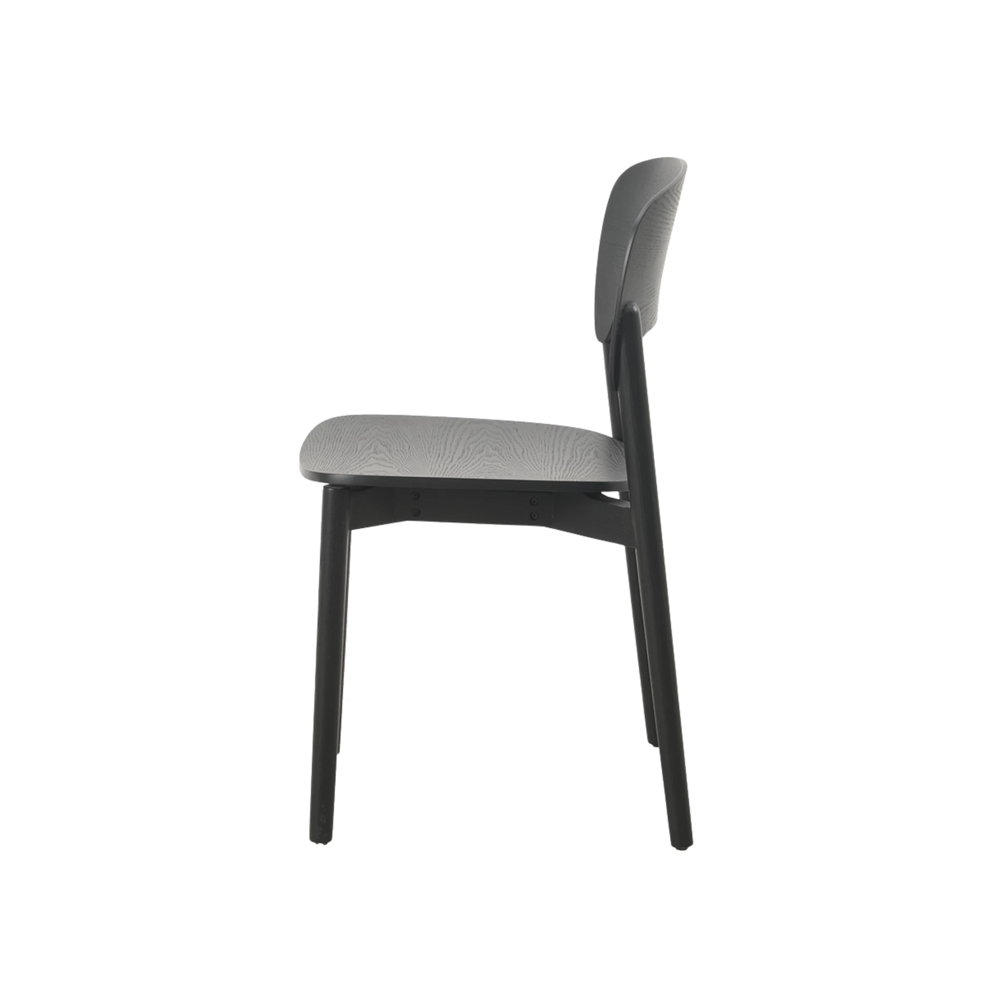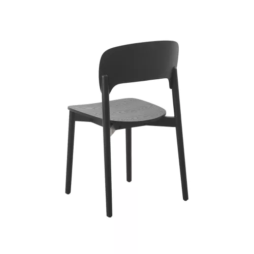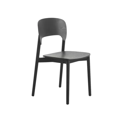 Moderne stoel van massief eikenhout, met strakke lijnen en een minimalistisch silhouet. Perfect voor eigentijdse horecagelegenheden. Verkrijgbaar in diverse houtafwerkingen.