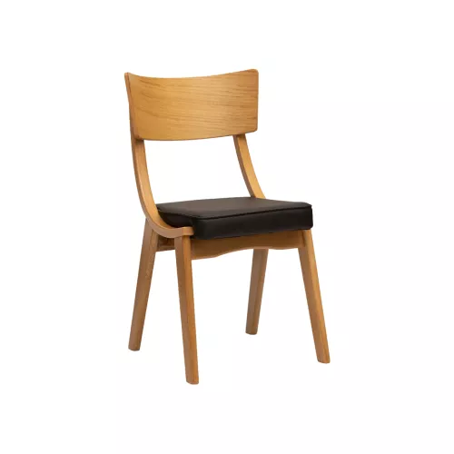 Deze stijlvolle stoel is vervaardigd uit stevig beukenhout en afgewerkt met een hoogwaardige polyurethaanlak, wat zorgt voor een duurzame en elegante uitstraling. Verkrijgbaar in diverse houtkleuren, passend bij uiteenlopende interieurs. De zitting kan worden bekleed met een brede selectie professionele stoffen of echt leer, waardoor het product volledig aanpasbaar is voor horeca, kantoren of woonruimtes.