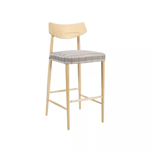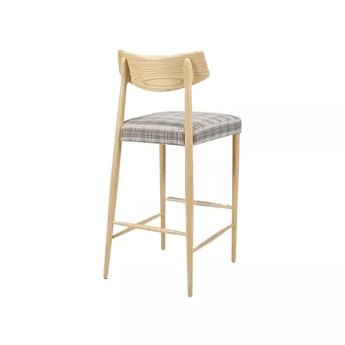 Elegante barkruk gemaakt van massief beuken- en essenhout, die natuurlijke schoonheid combineert met duurzaamheid. Het verfijnde silhouet maakt hem geschikt voor een breed scala aan horeca-interieurs, van klassiek tot modern. De ruime keuze aan houtbeitsen zorgt voor een perfecte aanpassing aan elke omgeving en versterkt de algehele sfeer met warmte en verfijning.