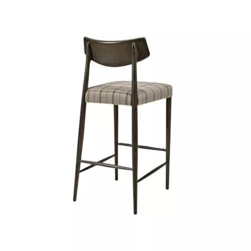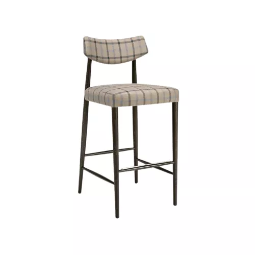 Barkruk met een stevig frame van beukenhout, ontworpen om zowel elegantie als langdurig comfort te bieden. De gestoffeerde zitting is voorzien van Nosag-veren voor extra ondersteuning en langdurige veerkracht, terwijl de gestoffeerde rugleuning zorgt voor een uitnodigende zitervaring. Speciaal ontworpen voor horeca-interieurs combineert hij verfijnde esthetiek met hoogwaardige materialen. Verkrijgbaar in een breed scala aan stoffen en texturen die hun schoonheid behouden, zelfs bij intensief gebruik.