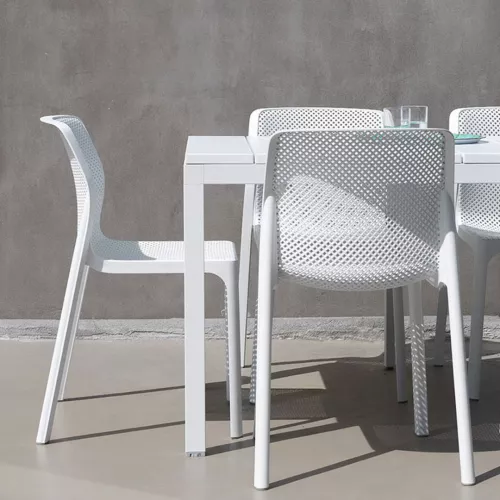 Bit is een moderne monobloc buitenstoel van egaal gekleurd glasvezel-polypropyleen met UV-additieven. De matte afwerking en recyclebare hars maken hem perfect voor elk HORECA-terras. Verkrijgbaar in meerdere kleuren.