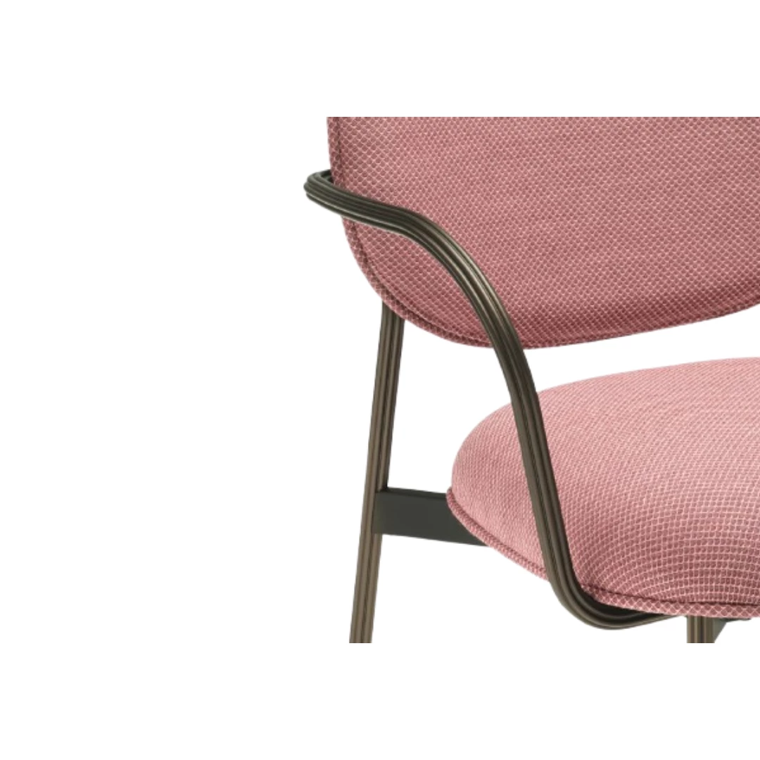 Blume Lounge Fauteuil – een stijlvolle fauteuil met geëxtrudeerde aluminium poten en armleuningen met een bloemvormig profiel van Ø19 mm. Bekleed met flexibel polyurethaanschuim biedt hij comfort en elegantie, perfect voor lounges en restaurants.