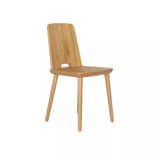 De Bregenz stoel is gemaakt van natuurlijk essen hout en heeft een lineair en veelzijdig ontwerp, waardoor hij ideaal is voor commerciële omgevingen. Hij is gemakkelijk te verplaatsen en te transporteren dankzij het gat in de rugleuning, dat zich op zitdiepte bevindt. De zitting is gemaakt van massief essen hout met een fineerafwerking. Hij is afgewerkt met een polyurethaan lak, wat zorgt voor duurzaamheid bij intensief commercieel gebruik. Verkrijgbaar in verschillende kleuren met een open afwerking. Optioneel kunnen beschermende voetjes van kunststof of vilt worden toegevoegd. De verfijnde proporties en het strakke ontwerp maken deze stoel tot een veelgebruikt meubelstuk.