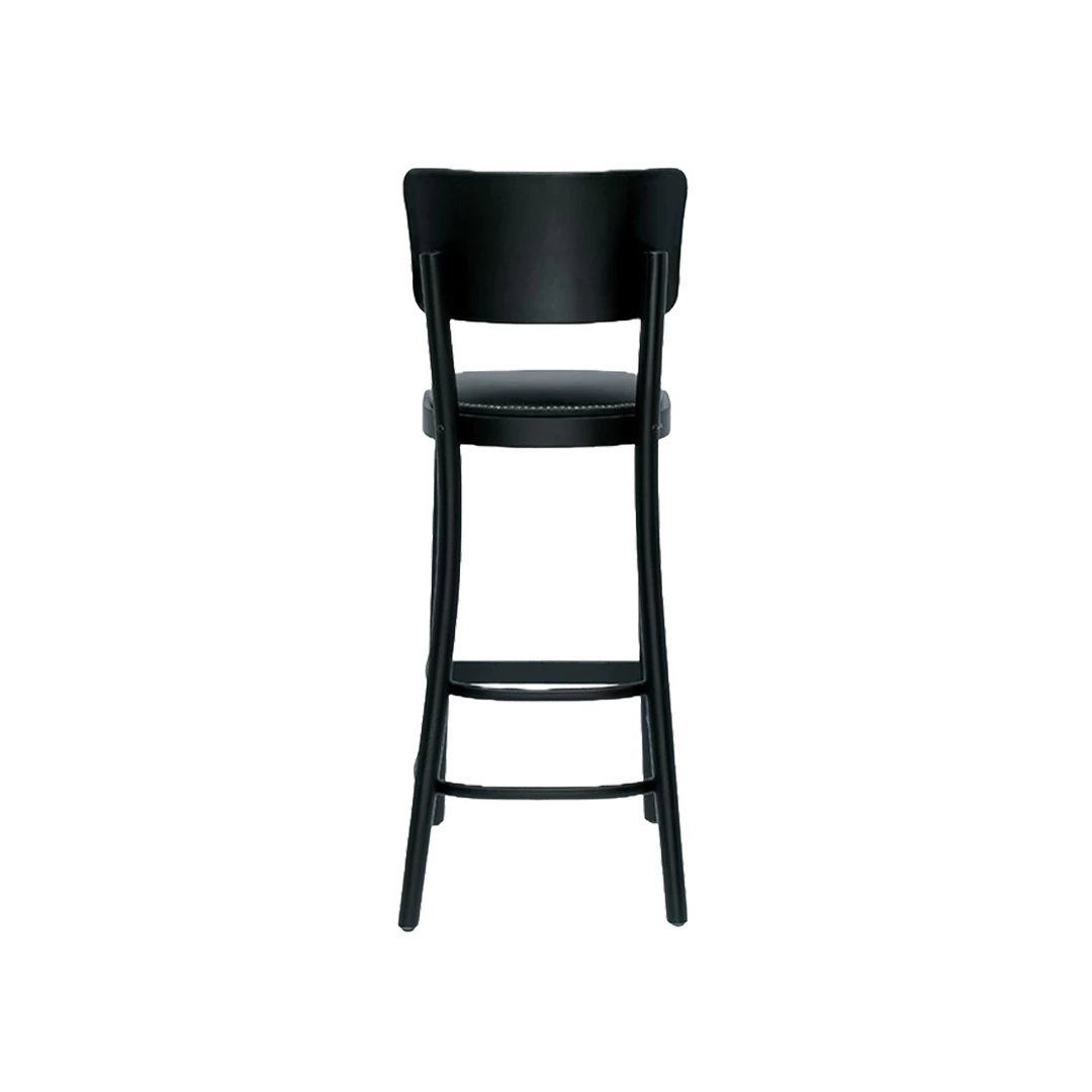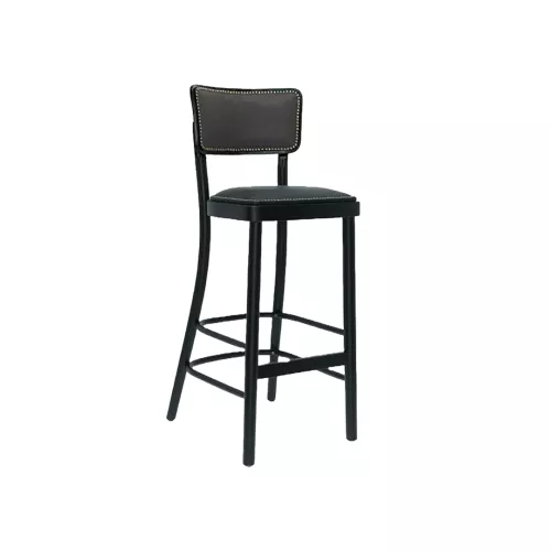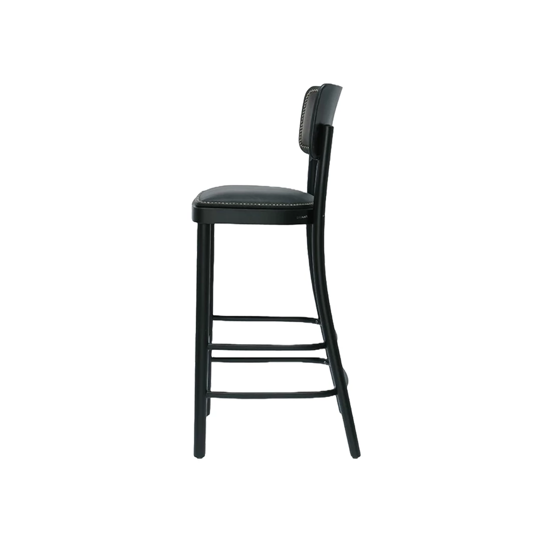 De Bridged BK houten barkruk combineert klassieke elegantie met modern comfort. Hij heeft een massief beukenhouten frame en een houten voetensteun, en een gestoffeerde zitting en rugleuning met decoratieve accenten. Verkrijgbaar in een breed scala aan professionele stoffen of kunstleer en diverse houtbeitskleuren, perfect voor bars en horecagelegenheden.