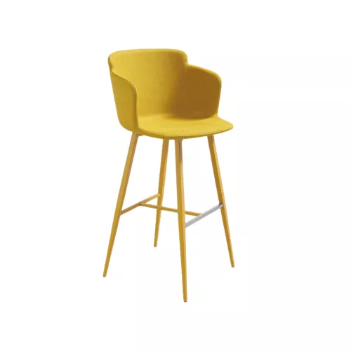 Elegante vaste barkruk met armleuningen, voorzien van een stevig metalen onderstel met vier poten en een gestoffeerde kuip, verkrijgbaar in stof, leer of imitatieleer. De versie met kunststof kuip is geschikt voor buitengebruik en biedt een grote veelzijdigheid voor zowel binnen als op het terras. Verkrijgbaar in twee hoogtes – H65 en H75 – combineert deze barkruk modern design, comfort en duurzaamheid, waardoor hij een perfecte aanvulling is voor stijlvolle bars, cafés en restaurants.