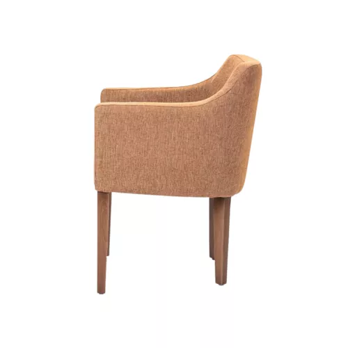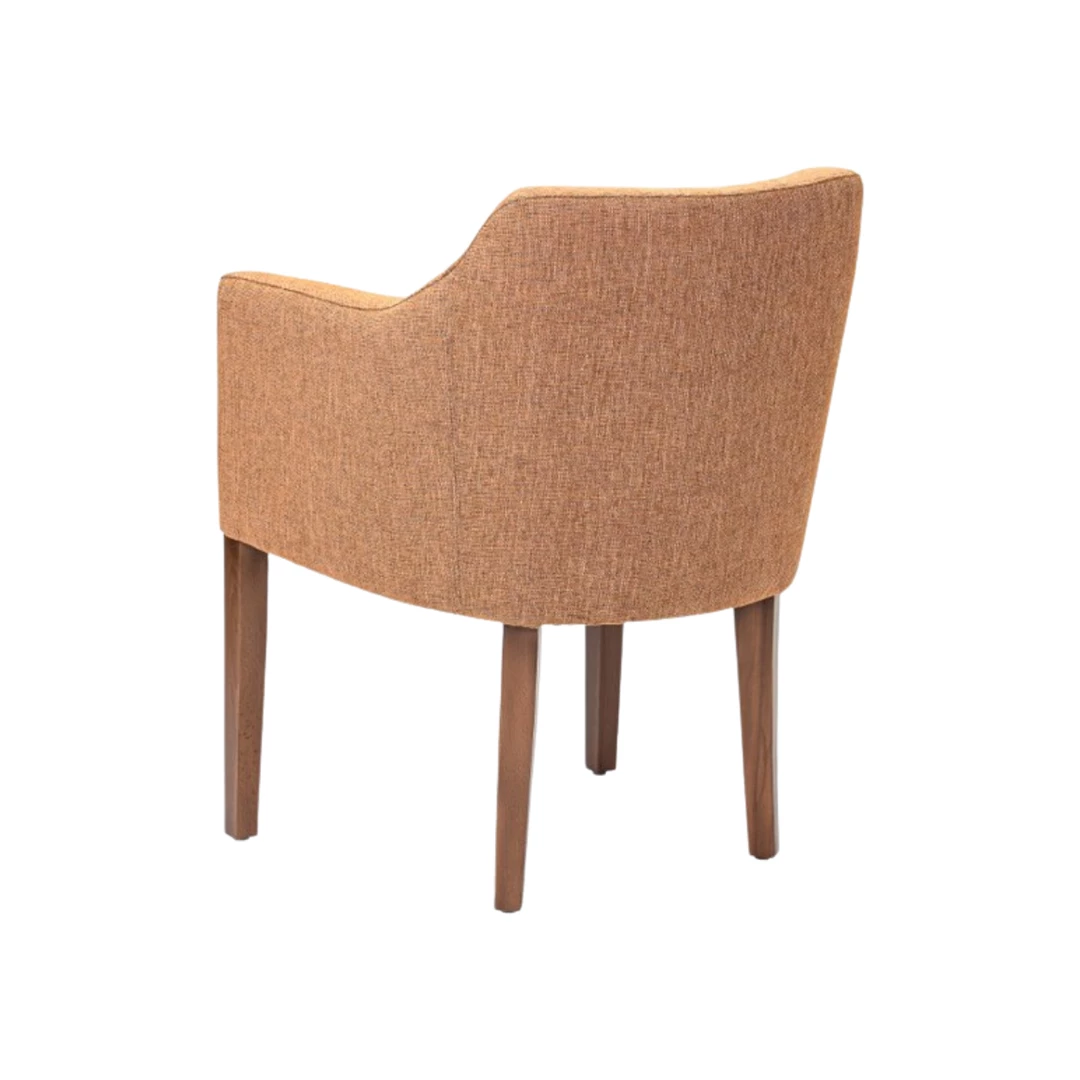 De Carmin-stoel biedt uitzonderlijk comfort en stijl, met aflopende armleuningen en een volledig beklede zitting. Het frame is gemaakt van massief beukenhout en afgewerkt met een slijtvaste polyurethaanlak. Verkrijgbaar in diverse houtbeitskleuren. De hoge dichtheid schuimvulling garandeert langdurig comfort, zelfs bij intensief gebruik.
