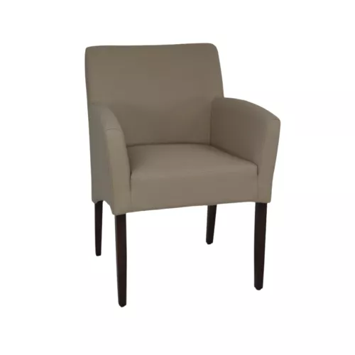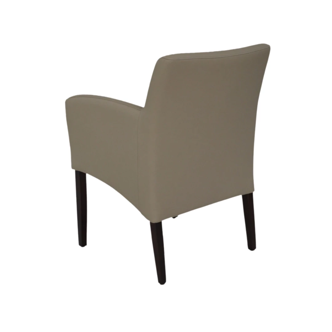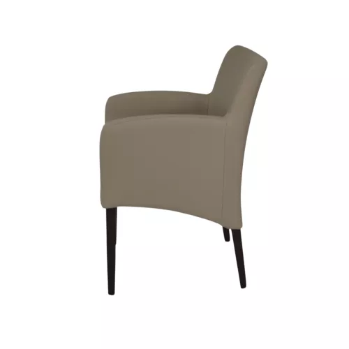 Claude is een gestoffeerde stoel met armleuningen, voorzien van een stevig frame van beukenhout. Perfect voor elke horeca-inrichting, biedt hij comfort, duurzaamheid en stijl. De bekleding is verkrijgbaar in een brede selectie van professionele stoffen of kunstleer, passend bij elk interieur.