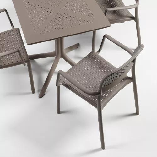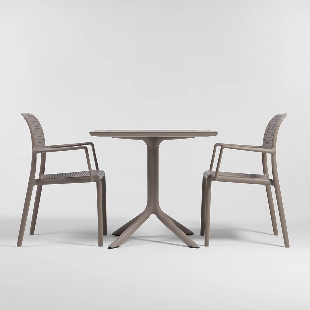 De Clip-tafel is de ideale oplossing voor professionele buitenruimtes en combineert duurzaamheid, stijl en functionaliteit. Dankzij het stevige frame van polypropyleen is de tafel bestand tegen intensief gebruik in drukke restaurants, cafés, bistro's en op terrassen. Verkrijgbaar in een breed scala aan verfijnde kleuren – wit, antraciet, tortoise, agave en tabak – past de Clip naadloos in elk interieur en creëert een samenhangende en uitnodigende sfeer. De lichtgewicht maar robuuste constructie zorgt voor eenvoudige verplaatsing, terwijl de stabiliteit en duurzaamheid behouden blijven. Dit maakt de tafel perfect voor commerciële omgevingen waar betrouwbaarheid en esthetiek even belangrijk zijn.