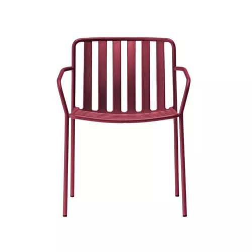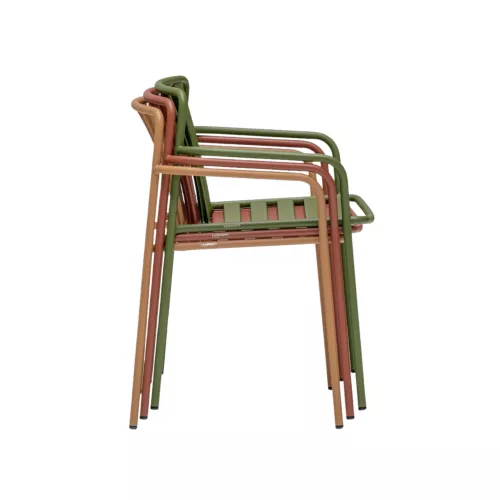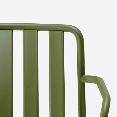 Coney is een outdoorcollectie die functionaliteit, comfort en een sterk grafisch karakter combineert. Deze armstoel uit één materiaal heeft een gebogen, stevig buisframe dat stabiliteit en elegantie samenbrengt. De zitting en rugleuning vormen een driedimensionale structuur die ergonomische ondersteuning en stevigheid biedt. De gelijkmatig verdeelde verticale lamellen van de rugleuning, gevormd uit metalen plaat, creëren samen met de horizontale lamellen van de zitting een uniek patroon. Coney is perfect geschikt voor stedelijke buitenruimtes, restaurantterrassen en huiselijke patio’s.
