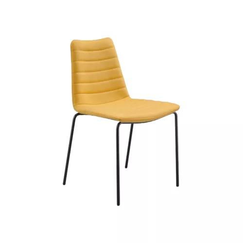 De Cover S M_M TS gestoffeerde stoel combineert verfijning en elegantie met functioneel design. Het metalen onderstel met vier poten, verkrijgbaar in gelakte of verchroomde afwerking, ondersteunt een comfortabele gestoffeerde kuip. De stoel is volledig stapelbaar tot 4 stuks, biedt veelzijdigheid en is verkrijgbaar in een breed scala aan professionele stoffen of kunstleer.