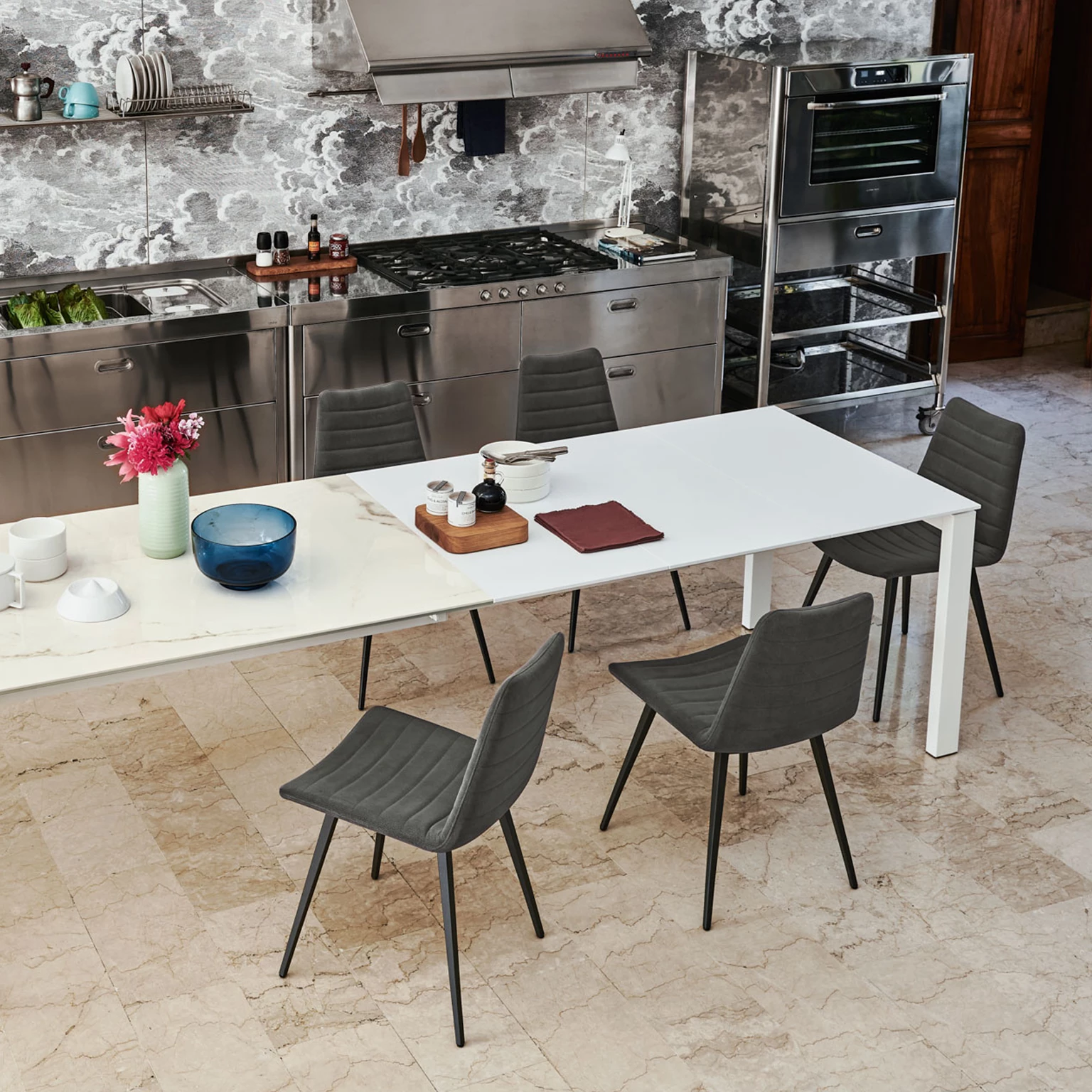 Reinig met een microvezeldoek en neutraal reinigingsmiddel. Spoel altijd na met water en droog na het schoonmaken. Vermijd het gebruik van bleekmiddelen, reinigingsmiddelen, oplosmiddelen en schurende producten. Verwijder onmiddellijk eventuele vloeistoffen of andere resten om opname en blijvende vlekken te voorkomen. Houd er rekening mee dat deze suggesties slechts aanbevelingen zijn en geen volledige verwijdering van vlekken garanderen. Raadpleeg altijd de technische en onderhoudsspecificaties vermeld op elk specifiek blad en de aanwijzingen op eventuele etiketten.