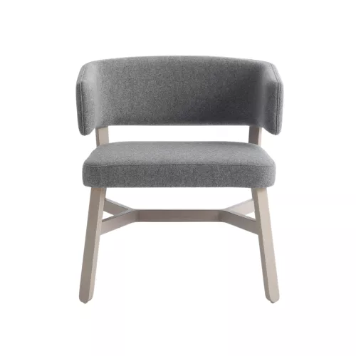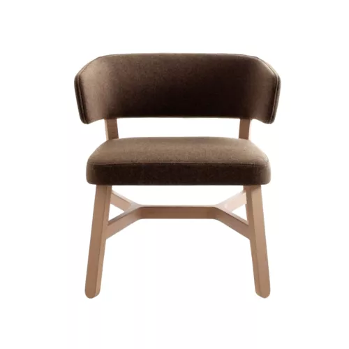 Croissant 572 is een loungefauteuil die comfort en stijl moeiteloos samenbrengt. Met een gebogen rugleuning en een stevig frame van beukenhout biedt hij zowel ondersteuning als uitstraling. De stoel is bekleed in diverse professionele stoffen en past in elke horecalocatie.