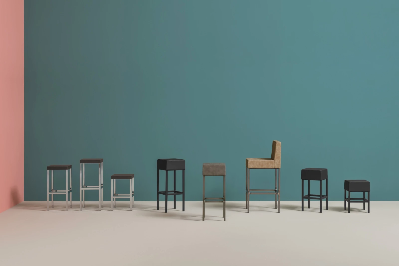 De Cube barkruk is geïnspireerd op een pure en eenvoudige geometrische vorm. Hij heeft een gestoffeerde zitting in stof, leer of kunstleder en een stevig stalen buisframe van 25x25 mm. Dankzij de compacte afmetingen is de Cube ideaal voor het optimaal benutten van de ruimte in interieurs zoals bars, restaurants en cafés.