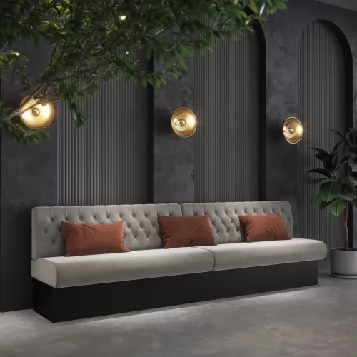 Donald Bench Capitons Foldings is een elegant gestoffeerde bank met capitonnering en plooien in de rugleuning, geïnspireerd op de Chesterfield-stijl. Voorzien van nosagveren en schuim met hoge dichtheid voor langdurig comfort. Verkrijgbaar in diverse professionele stoffen voor horeca-inrichting.