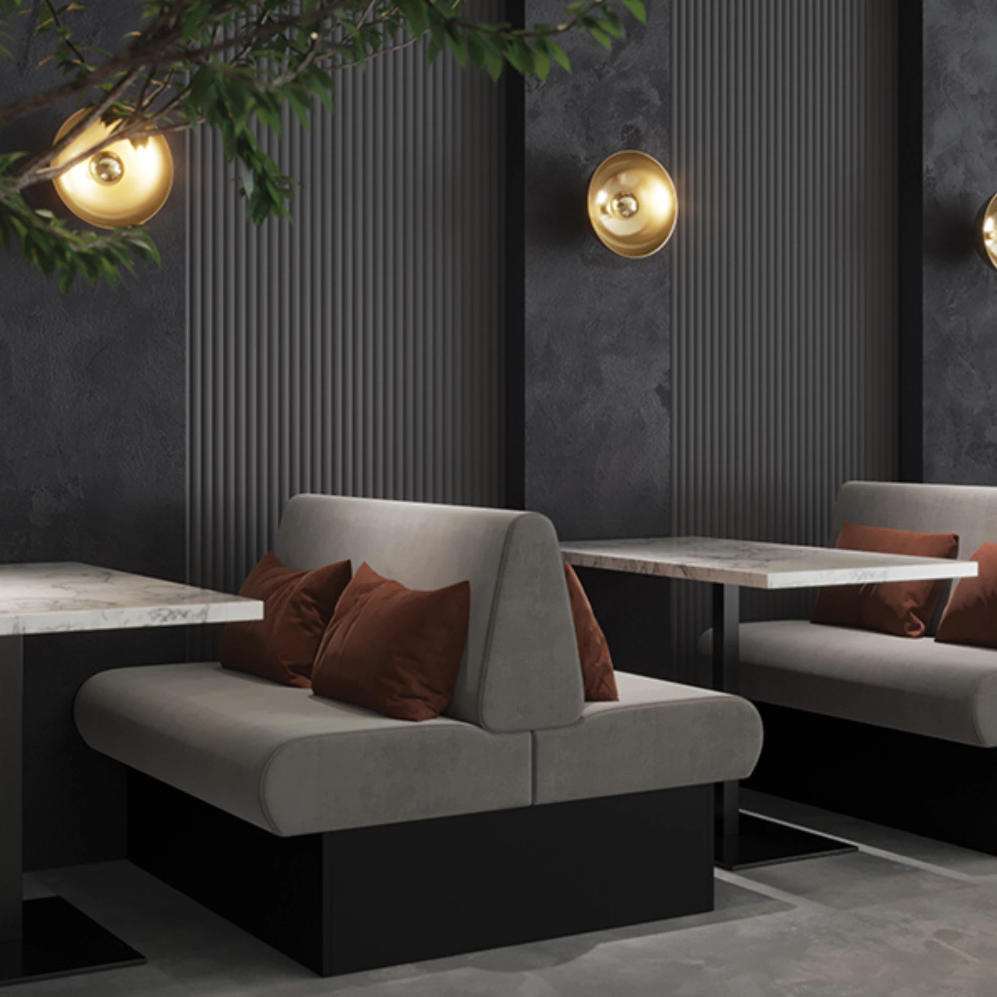 De Donald Double is een modulaire, Amerikaans geïnspireerde eetbank, perfect voor horeca-omgevingen. Voorzien van veerkrachtig schuim met hoge dichtheid en beschikbaar in vele stoffen of kunstleder. Volledig op maat te maken naar wens van de klant.