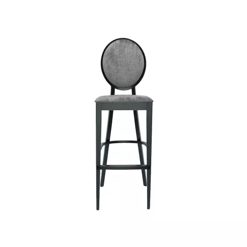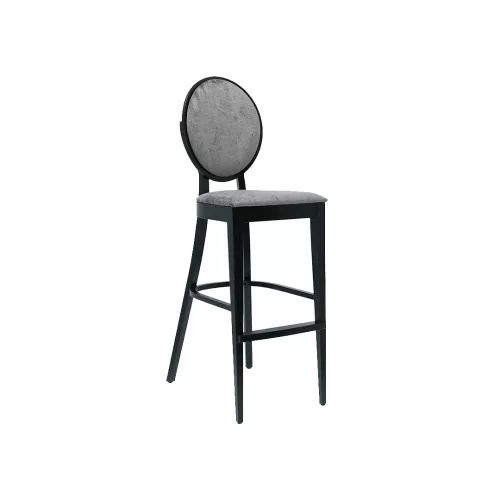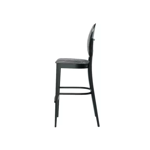 De houten barkruk Doris BK combineert klassiek design met modern comfort. Hij is gemaakt van een massief beukenhouten frame met een houten voetensteun en heeft een gestoffeerde zitting en rugleuning. Verkrijgbaar in een breed scala aan professionele stoffen of kunstleer en diverse houtbeitskleuren, is hij perfect voor bars en horecagelegenheden.