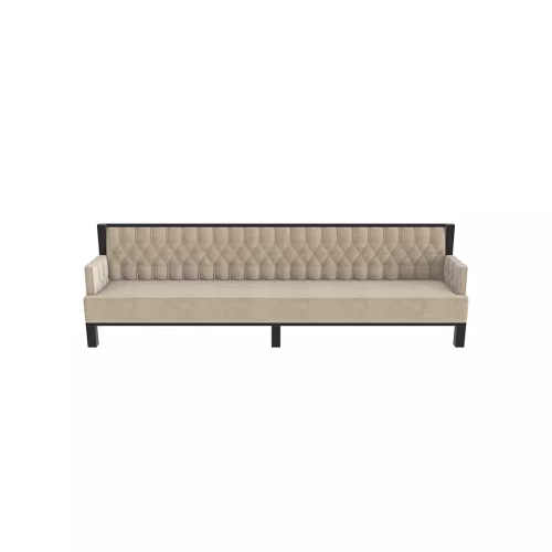 De bank is traditioneel met de hand gestoffeerd, net zoals een eeuw geleden. Het heeft een beukenhouten frame met een duurzame polyurethaanlak. De hoogdichte schuimvulling biedt langdurig comfort en weerstand tegen slijtage. Verkrijgbaar in diverse premium stoffen of kunstleer, met de mogelijkheid om het te personaliseren met uw eigen stof.