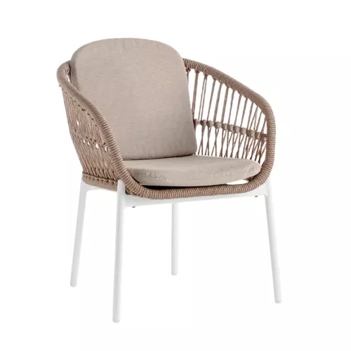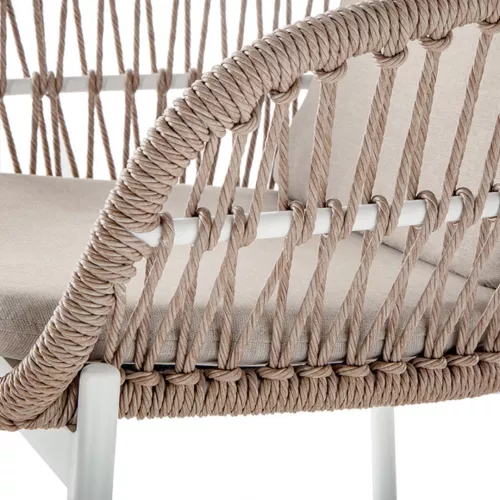 Burl is een moderne buitenstoel met armleuningen, gemaakt van aluminium en bekleed met Wintech synthetisch touw. De afneembare kussens met Olefin-stof zorgen voor comfort en zijn bestand tegen alle weersomstandigheden. Perfect voor elke horeca-terras.