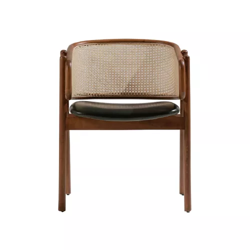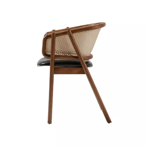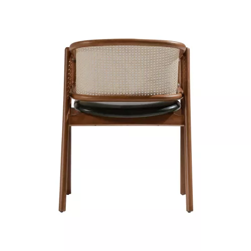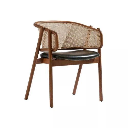 De Eleran stoel combineert tijdloze aantrekkingskracht met comfort en veelzijdigheid. Met een stevig beukenhouten frame, verkrijgbaar in diverse kleuren, een zacht gestoffeerde zitting en een stijlvolle rieten rugleuning, past hij moeiteloos bij diverse interieurstijlen. De bekleding van de zitting is verkrijgbaar in een breed scala aan professionele stoffen of kunstleer, waardoor hij ideaal is voor restaurants, hotels en andere horecagelegenheden.