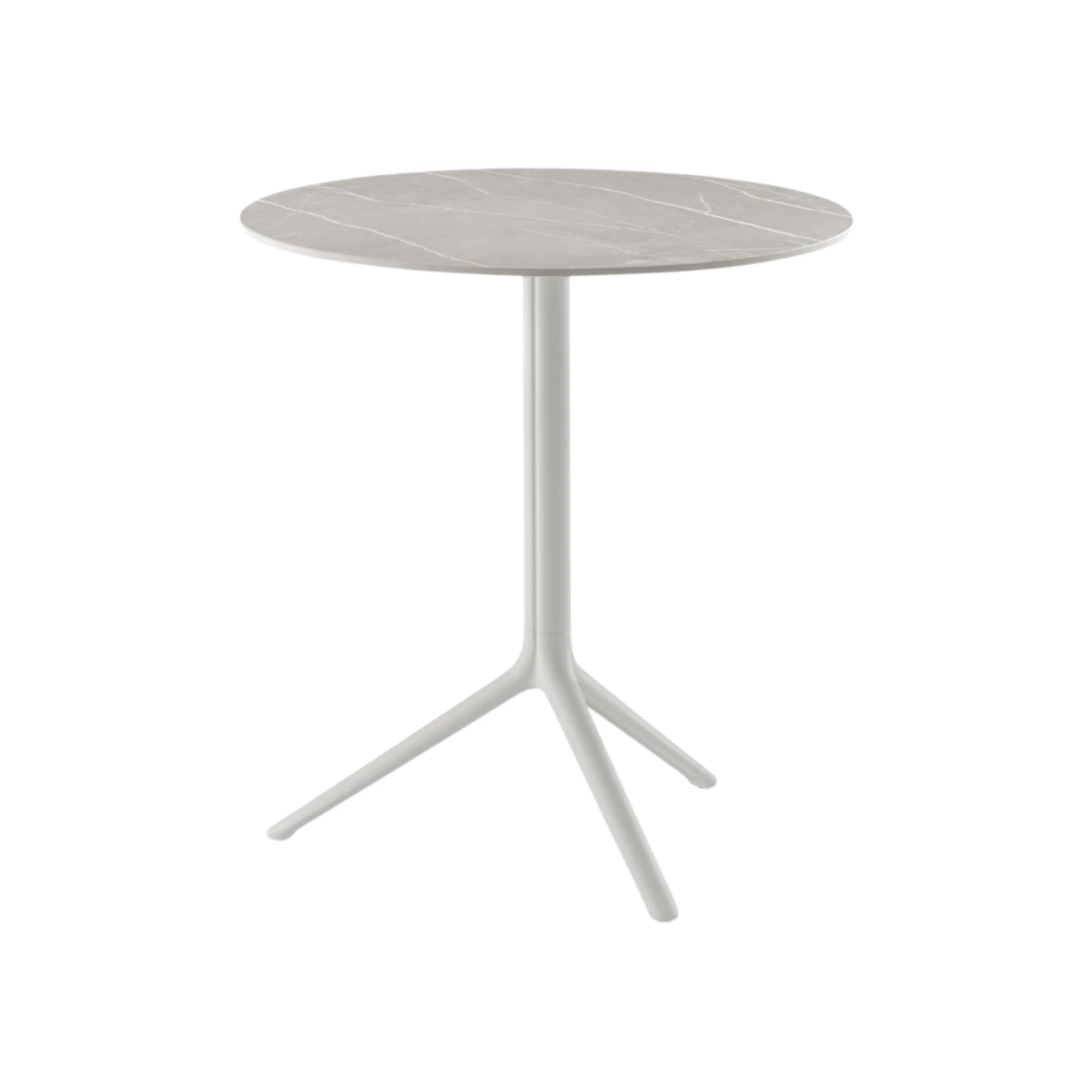 Tafelpoot van aluminium, beschikbaar in meerdere kleuren en maten. Centrale metalen basis geschikt voor koffietafels, restaurant- of bartafels. Verschillende kleurafwerkingen beschikbaar voor binnen- en buitengebruik.