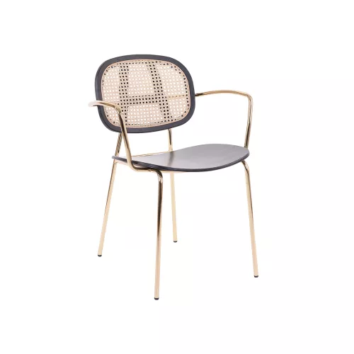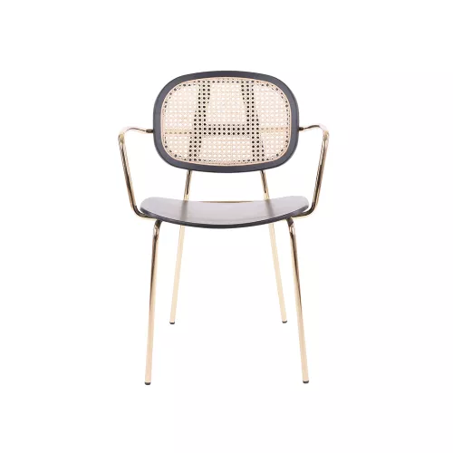 Eternity is een moderne stoel met armleuningen, metalen frame, fineer zitting en rotan rugleuning. Dankzij keuzemogelijkheden in frame- en houtkleuren is hij perfect af te stemmen op elke ruimte.