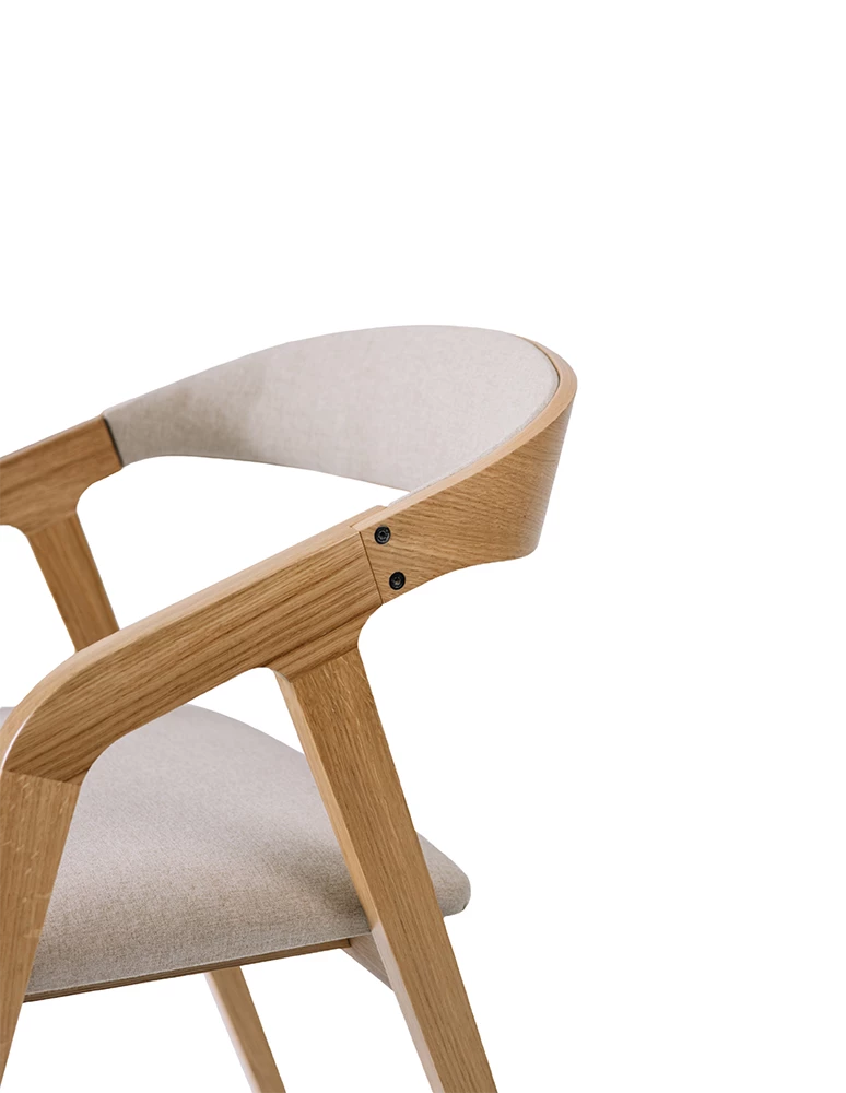Fame P is een elegante stoel met een gebogen rugleuning, massief beukenhouten frame en volledig gestoffeerde zitting en rug. Dankzij de vele opties in bekleding en houtafwerking past hij perfect in diverse horecazaken, van hotels tot restaurants, en biedt hij comfort en stijl in één.
