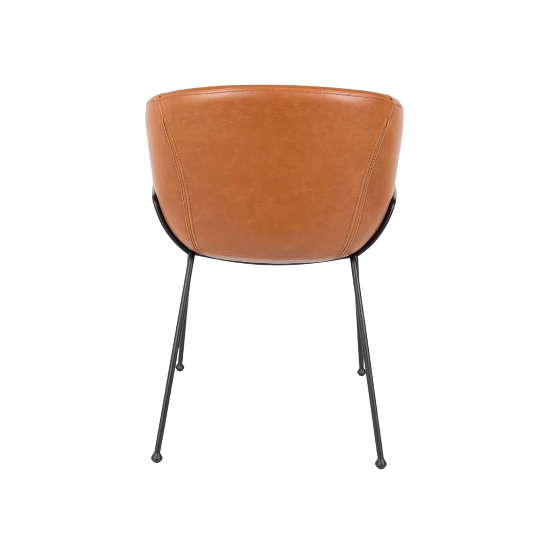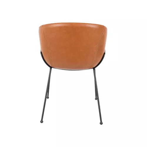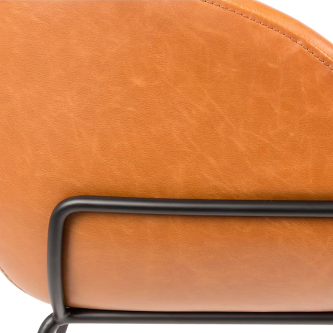 De Feston Armchair biedt comfort en karakter dankzij het zwarte, gepoedercoate stalen frame en armleuningen. Verkrijgbaar in drie varianten: grijze stof, bruin of zwart PU-leer. Decoratieve stiksels geven de bekleding een verfijnd detail.
