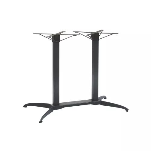 Flexi Feet D is een tafelvoet met dubbele kolommen en een gepatenteerd systeem dat zich automatisch aanpast aan oneffen oppervlakken. Dankzij het demonteerbare kruis is het tafelblad makkelijk te verwijderen. Beschikbaar in verzinkt of zwart gecoat. Geschikt voor 70x100 cm bladen, voor binnen en buiten, geleverd in onderdelen.