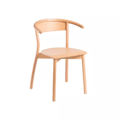De Gala A stoel biedt een moderne herinterpretatie van klassiek gebogen hout. De sierlijk gebogen rugleuning vormt een zachte boog die de gebruiker omarmt, terwijl het beukenhouten frame en de geïntegreerde armleuningen comfort en duurzaamheid garanderen. De Gala A is stapelbaar en verkrijgbaar in diverse kleuren, ideaal voor stijlvolle en functionele horeca-interieurs.