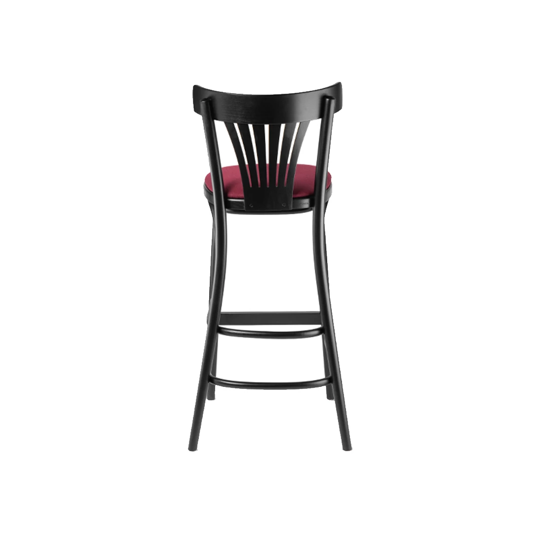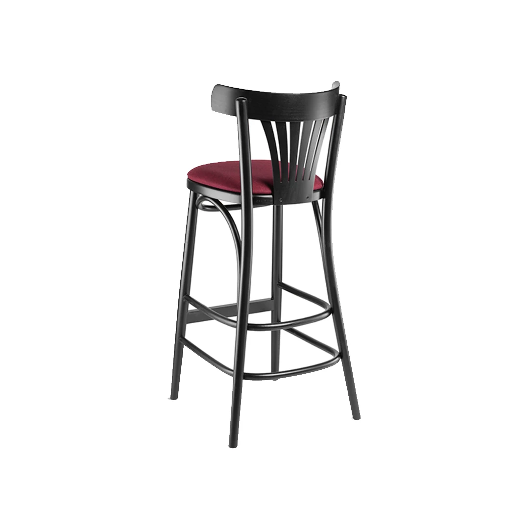De houten barkruk Hans BK combineert historisch design met modern comfort. Hij is gebouwd op een massief beukenhouten frame met een houten voetensteun en is verkrijgbaar met een gefineerde of gestoffeerde zitting in een breed scala aan professionele stoffen of kunstleer. Verkrijgbaar in diverse houtbeitskleuren, perfect voor bars, bistro's en horecagelegenheden.