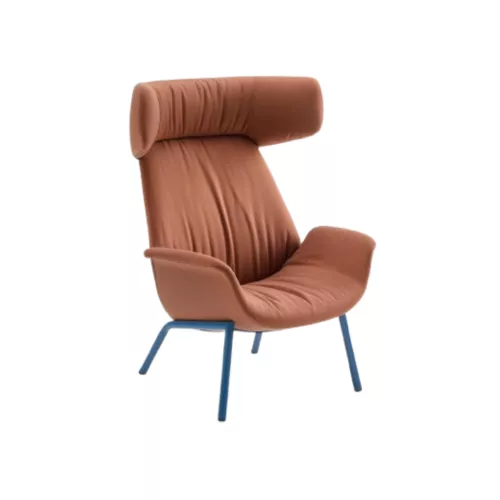 Ila 2022 is een elegante fauteuil met een stijve buitenschaal van polyurethaan en een zachte, flexibele binnenschaal van polyurethaan voor uitzonderlijk comfort. Hij wordt ondersteund door een stevig stalen buisframe van Ø30 mm en is verkrijgbaar met of zonder hoofdsteun. Volledig gestoffeerd en verfijnd, perfect voor lounges, hotels en stijlvolle restaurants.