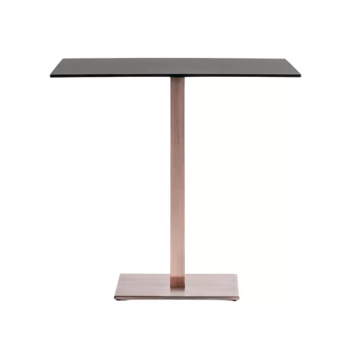 Tafelpoot met een gezandstraalde gietijzeren basis, een optionele roestvrijstalen afdekplaat en een centrale kolom in staal of roestvrij staal. Een veelzijdig ontwerp dat past bij uiteenlopende tafelbladen.