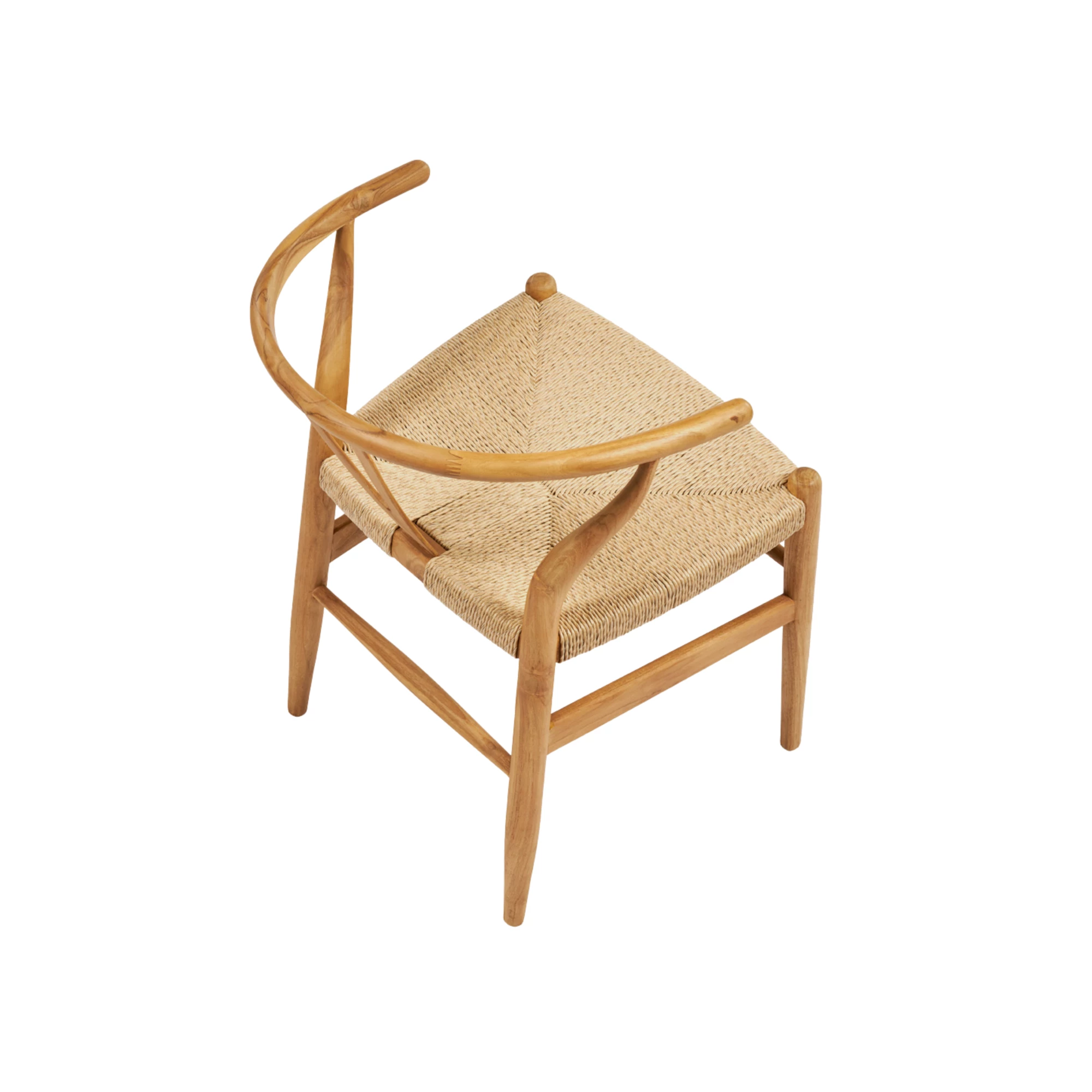 Buitenarmstoel van duurzaam teakhout met zitting en rugleuning van hoogwaardig synthetisch riet. Geschikt voor terrassen, tuinen en horecagelegenheden in de buitenlucht. Afmetingen: 58x57x73 cm.