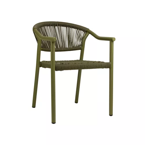 De Jenson terrasstoel heeft een duurzaam aluminium frame met poedercoating en is ontworpen voor professioneel buitengebruik. De geïntegreerde armleuningen verhogen het zitcomfort en benadrukken het stabiele karakter van de stoel.