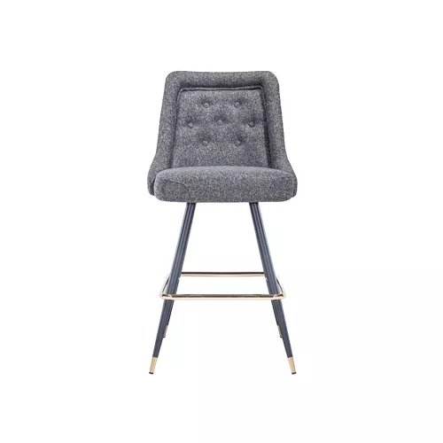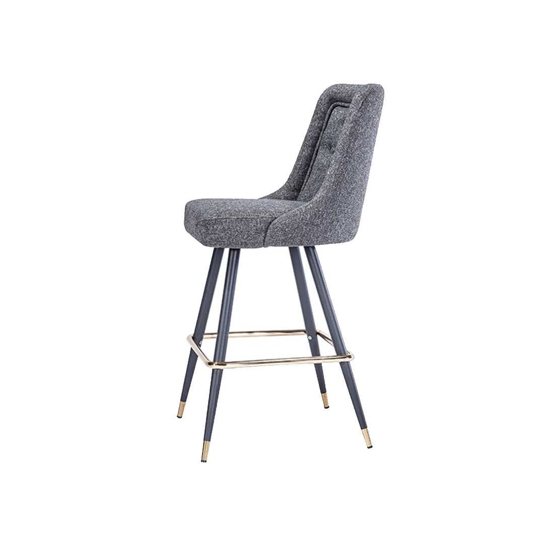 De Jim BK 001 B barkruk combineert elegantie met robuuste functionaliteit. Het metalen frame en de voetensteun garanderen duurzaamheid, terwijl de gestoffeerde zitting, verkrijgbaar in professionele stoffen of imitatieleer, comfort biedt. De decoratieve knopen op de rugleuning zorgen voor verfijning, waardoor hij perfect is voor bars, hotels en andere horecagelegenheden.