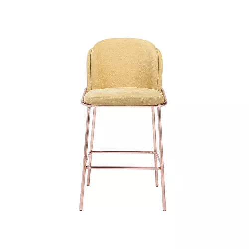 Jim BK 005 B is een elegante barkruk met een goudkleurig metalen frame, gestoffeerde zitting en rugleuning. Met keuze uit vele professionele stoffen is maatwerk mogelijk. Dankzij het moderne ontwerp en de stevige constructie is hij perfect voor drukbezochte horecalocaties.