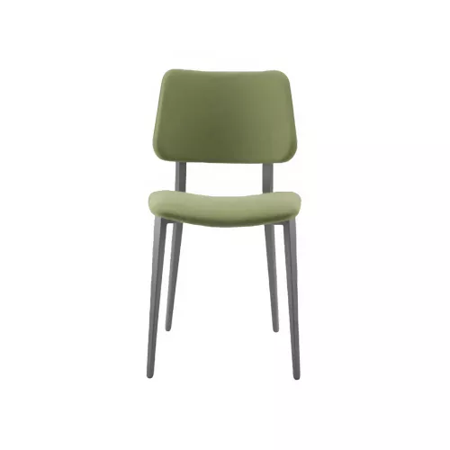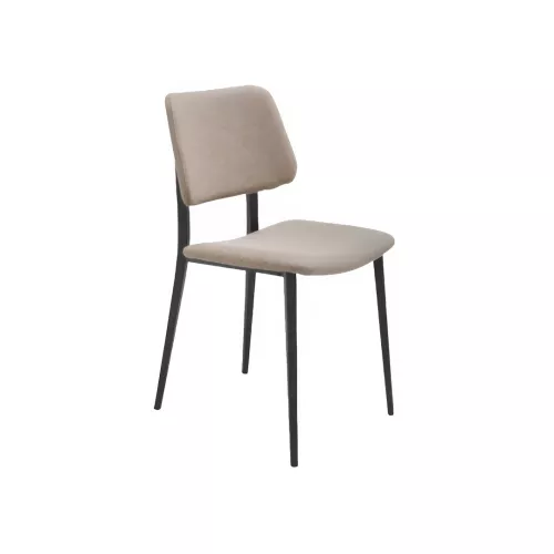De Joe S M TS stoel combineert eigentijds design met comfort en veelzijdigheid. Met een vierpotig gelakt stalen frame en een gestoffeerde zitting en rugleuning in leer, imitatieleer of stof, kan hij worden aangepast met verschillende materialen of kleuren. Een gefineerde houten rugleuning en diverse frameafwerkingen maken hem ideaal voor horeca-omgevingen.