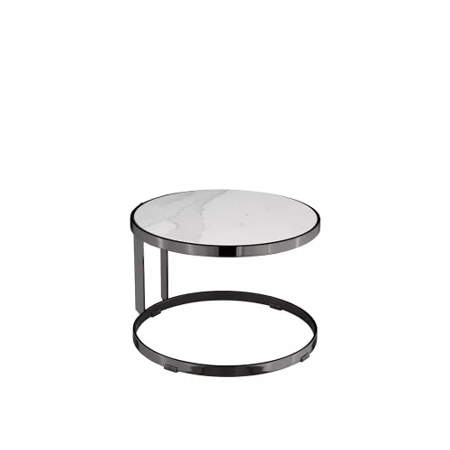 De Joint S salontafel valt op door zijn hoogte van 35 cm en compacte blad van ⌀50 cm, ideaal voor horecagelegenheden. Met een ronde stalen voet in diverse kleuren is hij verkrijgbaar met een keramisch blad of een blad bekleed met leer. Elegant en ruimtebesparend, past hij naadloos in loungeruimtes, cafés of hotelinterieurs met een verfijnde sfeer.