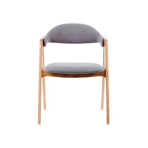 Breng een combinatie van moderne elegantie en comfort in je eetruimte met deze restaurantstoel met eikenhouten frame. De stoel heeft een verfijnd vervaardigd frame van eikenhout, dat zowel duurzaamheid als een warme, natuurlijke uitstraling biedt. De zitting en rugleuning zijn bekleed met hoogwaardige grijze stof voor een comfortabele en verfijnde zitervaring.