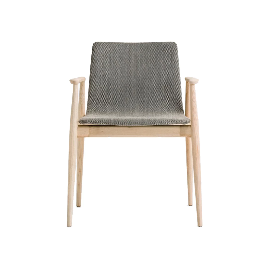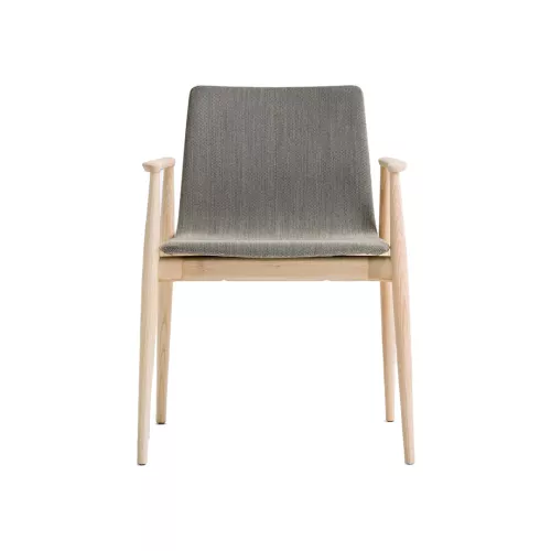 De Malmö 396 fauteuil combineert de knusse warmte van essenhout met een sierlijk taps toelopende vorm, geïnspireerd op klassiek vakmanschap. De gestoffeerde kuip rust op een stevig onderstel en armleuningen van massief essenhout, met subtiel versterkte verbindingen die zich natuurlijk naar de randen toe vernauwen. Dit ontwerp viert de puurheid van de vorm en biedt zowel degelijke ondersteuning als een luchtige elegantie. Verkrijgbaar in een breed scala aan professionele stoffen, past de Malmö 396 zich moeiteloos aan elk interieur aan en brengt traditie en modern comfort samen.