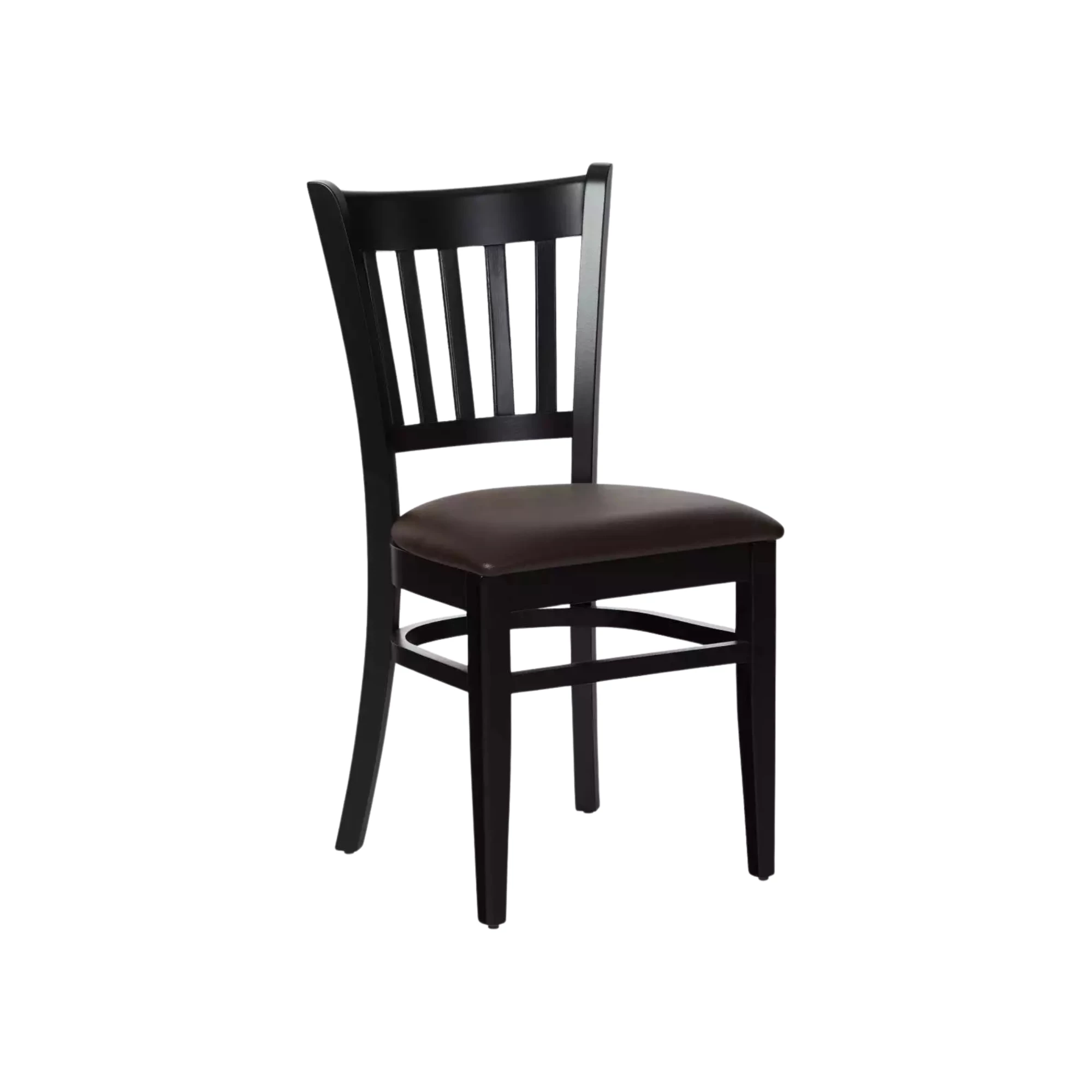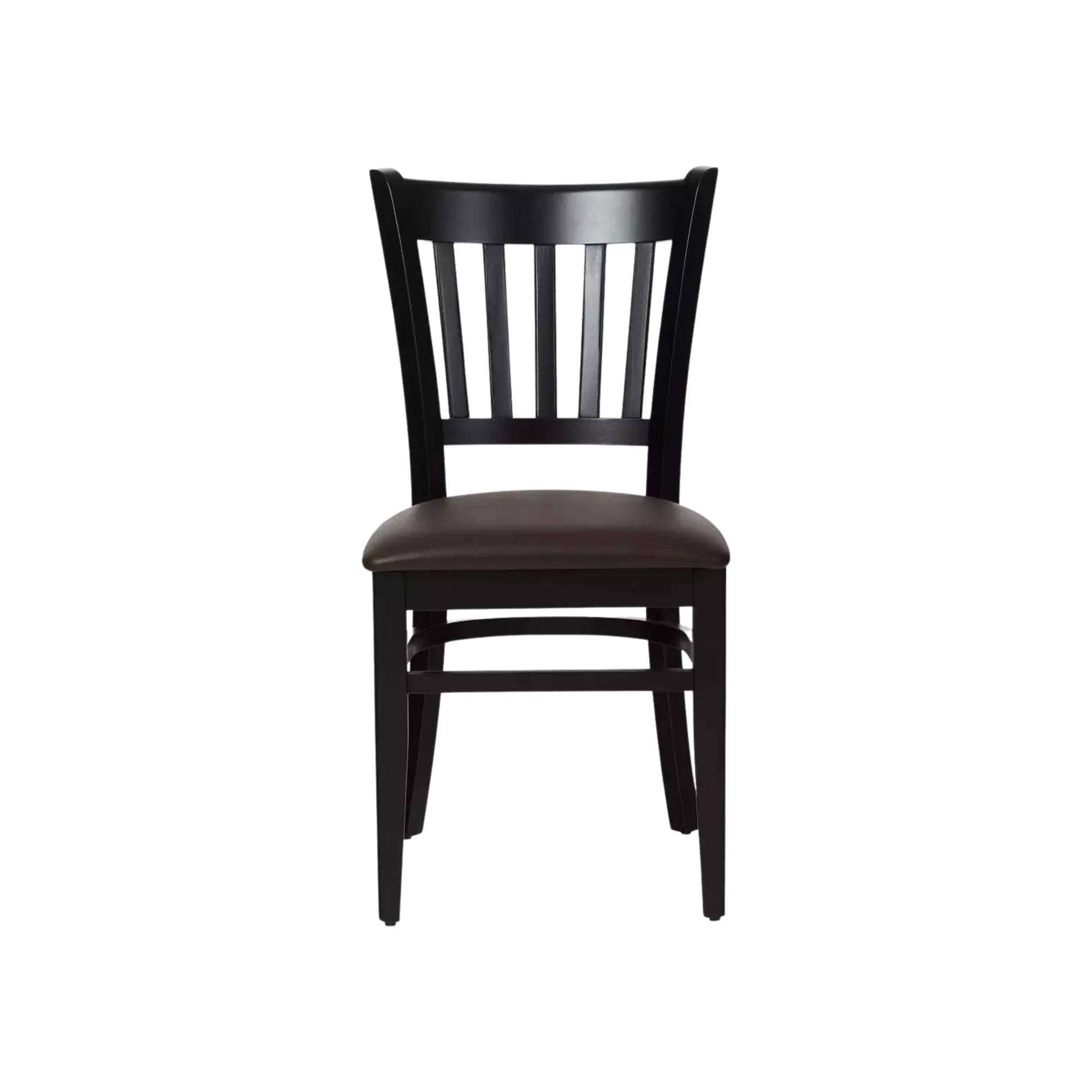 Deze stevige houten stoel met verticale lattenrug is ontworpen voor intensief gebruik in horecagelegenheden. Alle verbindingen zijn met de hand verlijmd en verstevigd met hoekblokken en stalen beugels. De zitting is naar wens aanpasbaar met verschillende stoffeeropties of leverbaar met een afgewerkte multiplex of massief houten zitting. Optioneel zijn ook gestoffeerde rugleuningen aan de binnen- en buitenkant beschikbaar. Het frame is verkrijgbaar in diverse afwerkingen en een bijpassende barkruk is beschikbaar.