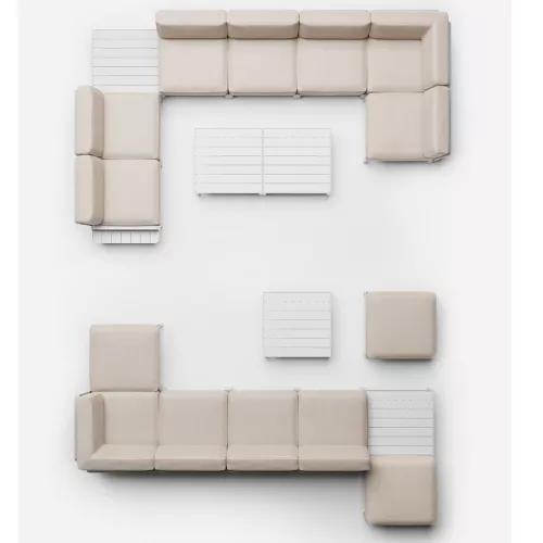 Maximo 5 Sofa is een modulair loungesysteem voor buitengebruik in horecalocaties. De set heeft 5 zitplaatsen en 8 rugleuningen. UV-bestendige, geregenereerde polypropyleenstructuur. Gereedschapsloos te monteren, kussens zijn afneembaar.