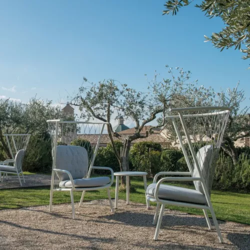 De Net Lounge HB is een verfijnde loungestoel voor buiten, volledig vervaardigd uit aluminium. Dit maakt hem lichtgewicht, duurzaam en perfect voor drukbezochte ruimtes. De strakke lijnen en moderne vorm worden aangevuld door zachte zit- en rugkussens die maximaal comfort garanderen. De Net Lounge HB is ontworpen om moeiteloos in stijlvolle interieurs te passen en combineert functionaliteit met esthetische aantrekkingskracht. Het resultaat is een hoogwaardige zitervaring, ideaal voor de horeca.