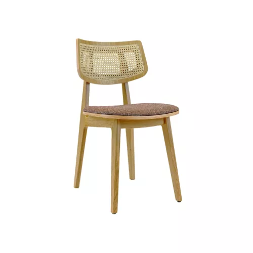Pellman Cane is een elegante en comfortabele stoel, ontworpen voor horeca-interieurs. Het beukenhouten frame is afgewerkt met polyurethaanlak en beschikbaar in meerdere houtkleuren. De rotan rugleuning en de zitting met schuim van hoge dichtheid bieden comfort en stijl. Volledig personaliseerbaar met professionele stoffen.