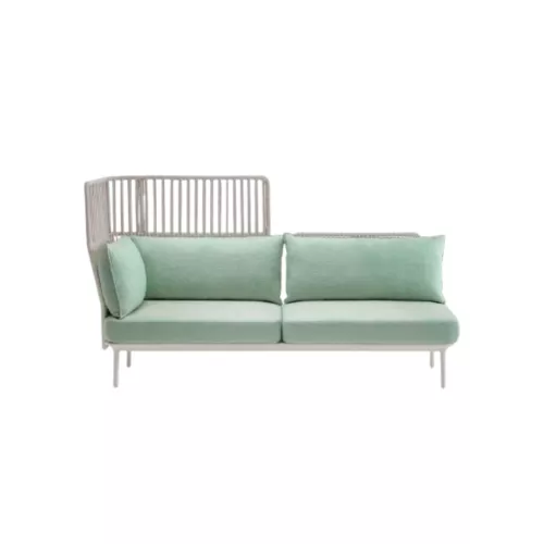 De Reva Cocoon RVC025/026 heeft een geëxtrudeerd aluminium frame op vier gegoten poten en roestvrijstalen rugleuningen omwikkeld met geweven polypropyleenkoord. De kussens zijn voorzien van een waterdichte beschermhoes en stoffen bekleding, wat zorgt voor verfijnd comfort op terrassen, in lounges en restaurants. Dankzij het modulaire systeem zijn er meerdere configuraties mogelijk, geschikt voor diverse omgevingen.